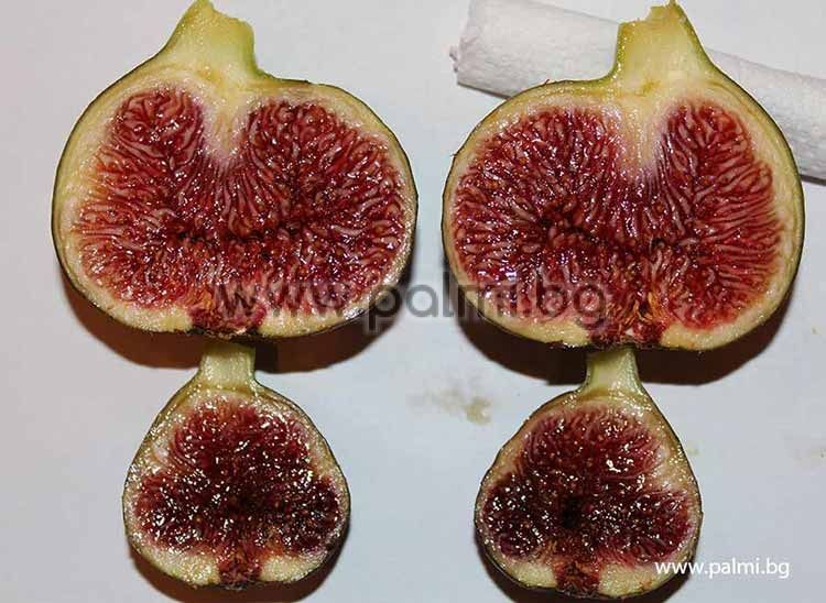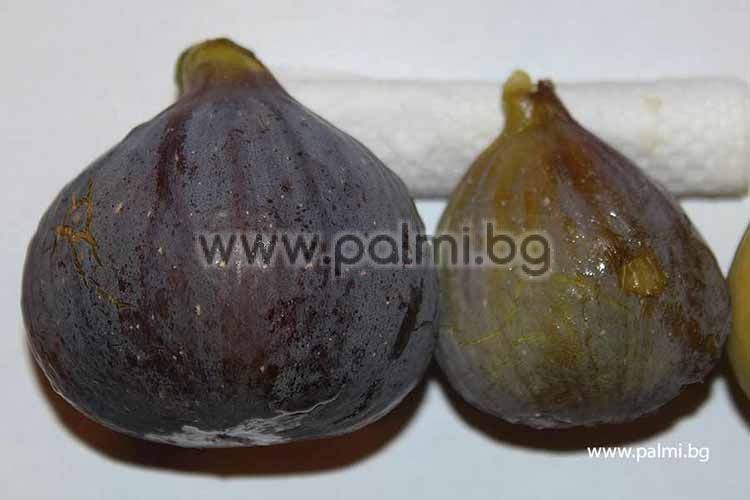 This fig grows and produces two crops quite well in the conditions of southern Bulgaria. It grows vigorously and reaches large size. This fig will produce main crop without pollination, but as with all figs, pollination gives far better results. The picture shows not pollinated and pollinated fruits. Larger fruit is pollinated. Its taste is completely different, much better.