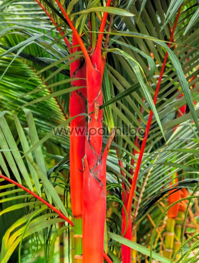 Cyrtostachys renda is one of the most exotic and striking palms in the world, famous for its glossy red leaf stalks and trunks that look as if they were dipped in bright lipstick – hence its popular names “Lipstick Palm” or “Sealing Wax Palm.” Its natural habitat includes the tropical swamps and coastal forests of Sumatra, Borneo, Malaysia, and Southern Thailand, where it is considered a symbol of prestige and beauty.